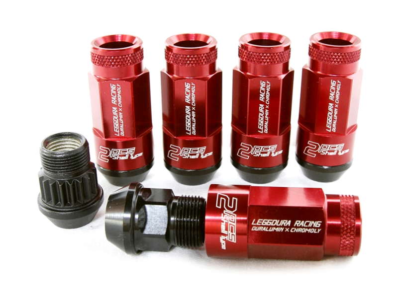 Project Kics 53mm Open-End Leggdura Racing Shell Type Lug Nuts -12x1.25 Red (16 Lugs + 4 Locks)